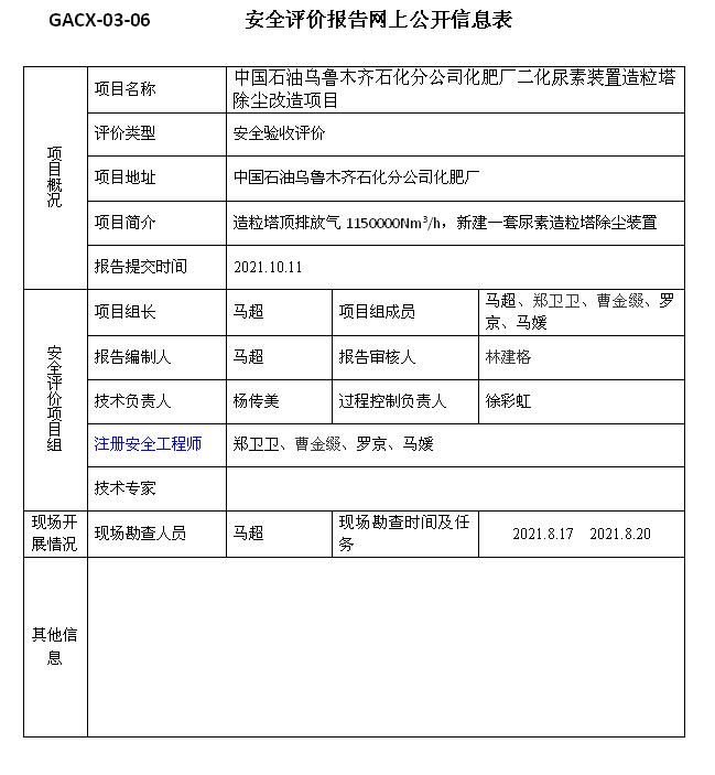 中国石油乌鲁木齐石化分公司化肥厂二化尿素装置造粒塔除尘改造项目