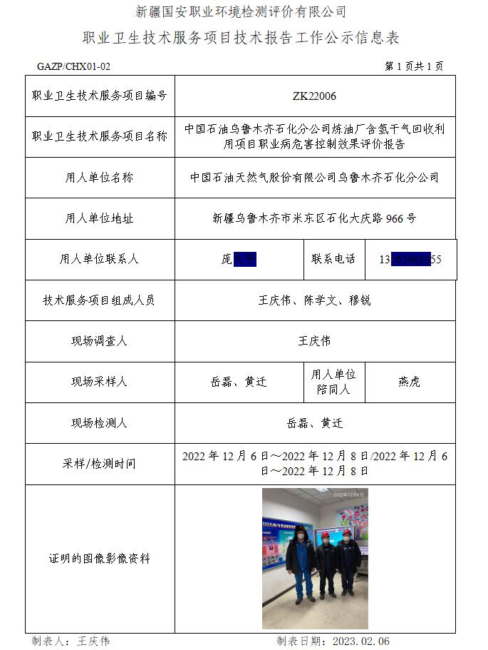 新疆神火煤电有限公司4×350MW机组超低排放改造BOT项目职业病危害控制效果评价报告