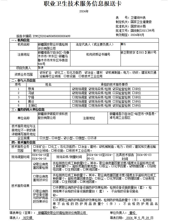 新疆义正诚矿业有限公司年产100万吨石英砂矿项目(新疆阿勒泰市吐曼德Ⅰ区北天然石英砂露天采矿工程)职业病危害控制效果评价报告
