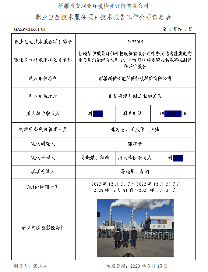 新疆新伊碳能环保科技股份有限公司哈密润达嘉能发电有限公司洁能综合利用2X135MW发电项目职业病危害控制效果评价报告