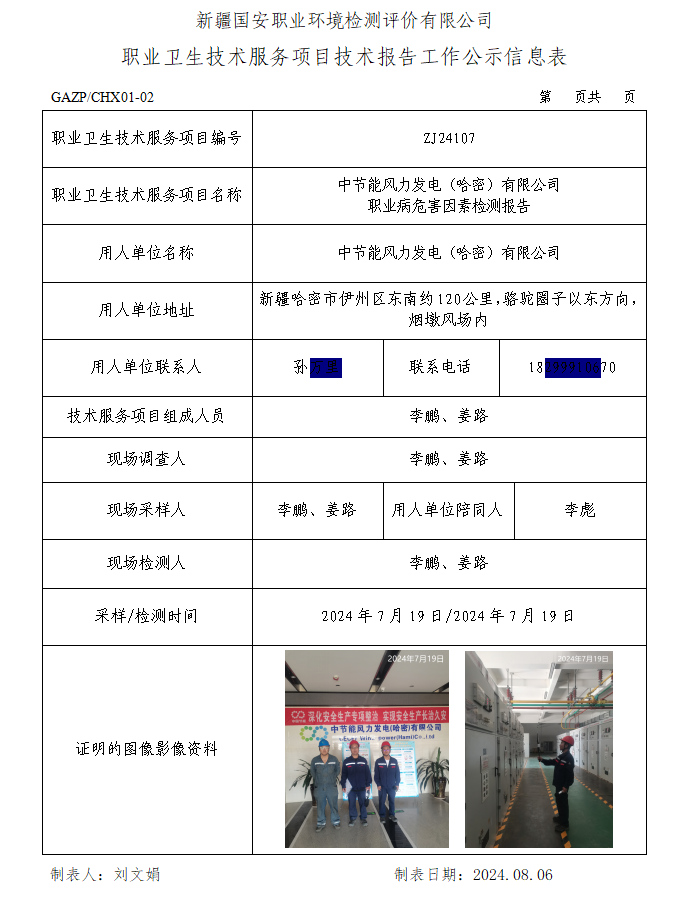 中节能风力发电(哈密)有限公司职业病危害因素检测报告