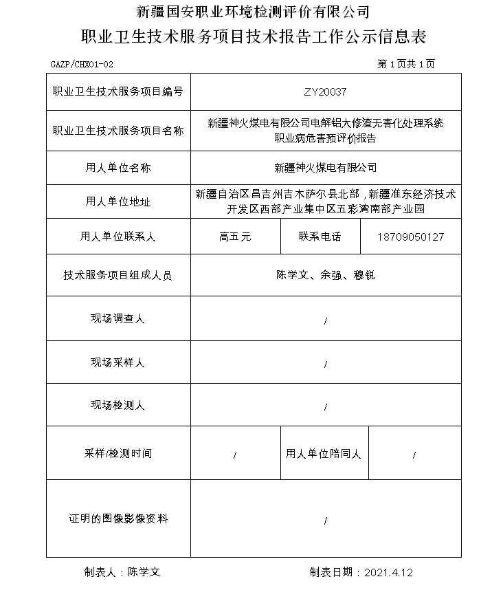 新疆神火煤电有限公司电解铝大修渣无害化处理系统 职业病危害预评价报告